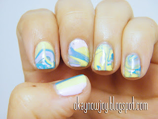 What I used: Barry M Turquoise, Kleancolors pastel pink, Essence Mellow yellow